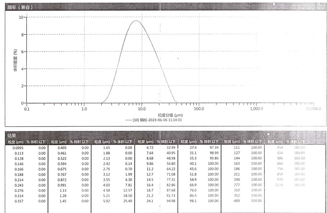進(jìn)料細(xì)度:閃蒸烘干后電解銅粉